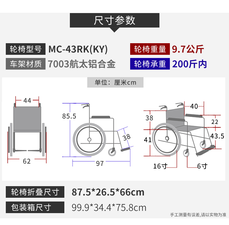 - 轮椅型号:MC-43RK