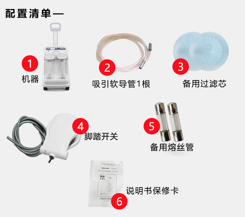 - 产品适用范围:产品供医疗机构用于吸除患者气道内分泌物和手术时吸除患者体内渗出液和冲洗液,产品不适用于流产吸引。