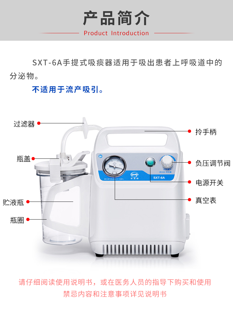 上海斯曼峰 手提式吸痰器 SXT-6A 产品简介:
