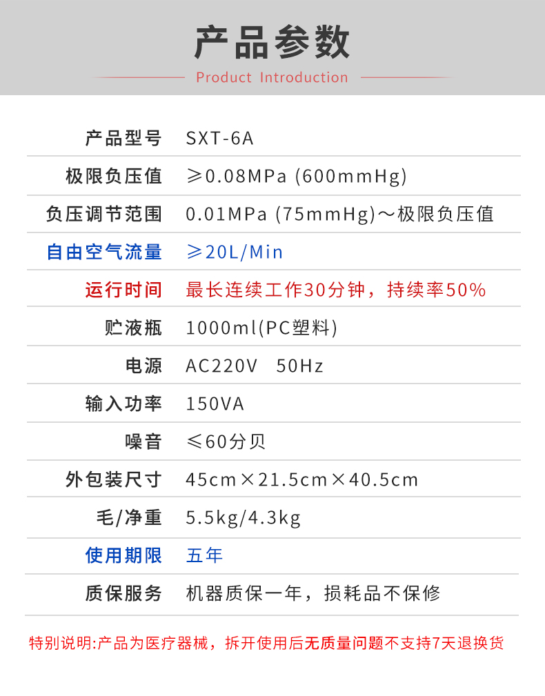 - 极限负压值:≥0.08MPa(600mmHg)