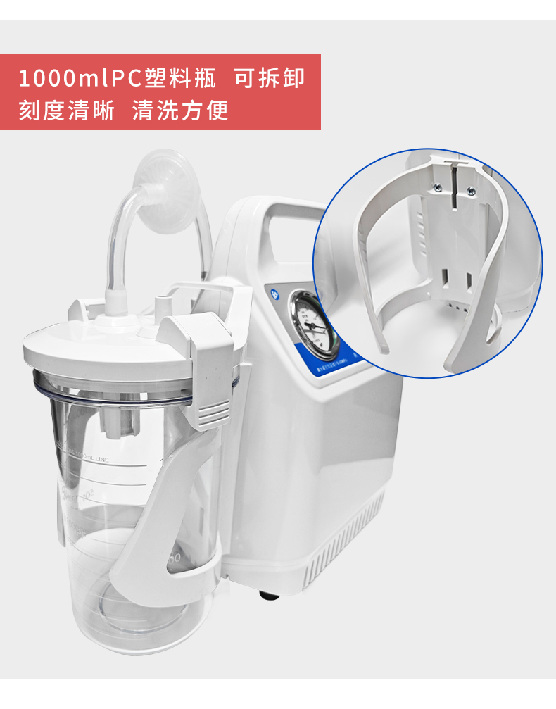 手提式吸痰器,特别适合病房中成人患者吸痰用。
