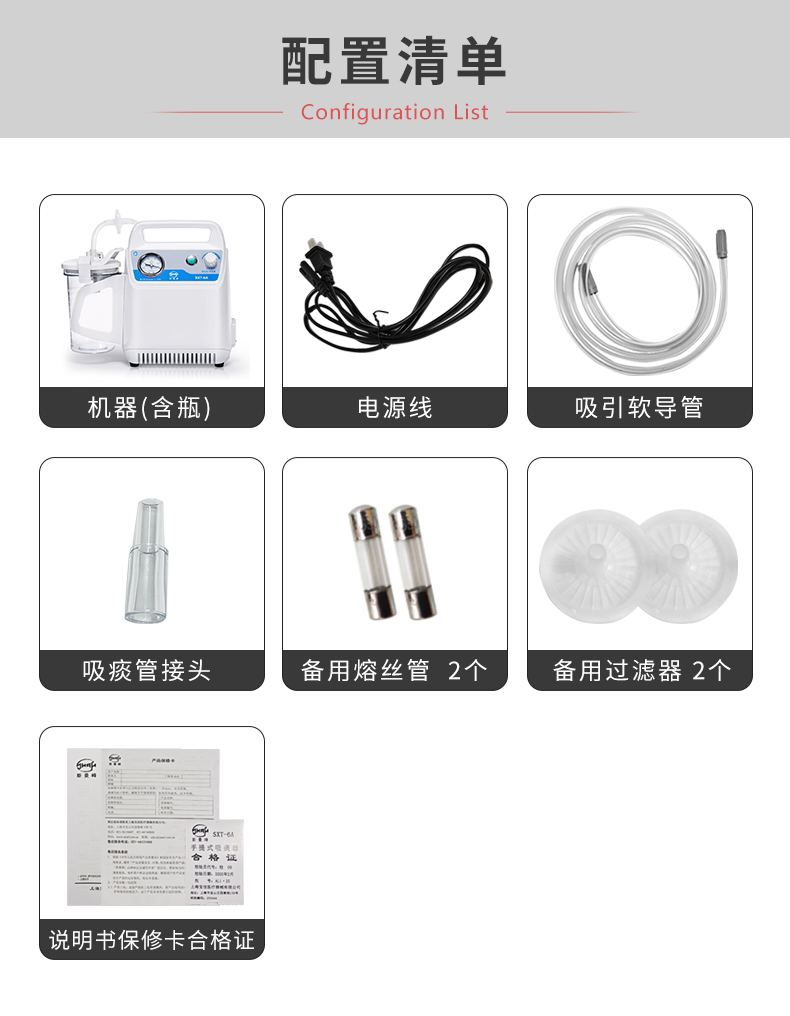 上海斯曼峰 手提式吸痰器 SXT-6A 产品附件: