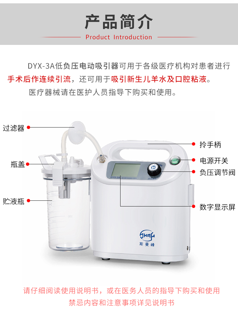 上海斯曼峰 低负压电动吸引器 DYX-3A 产品简介:
