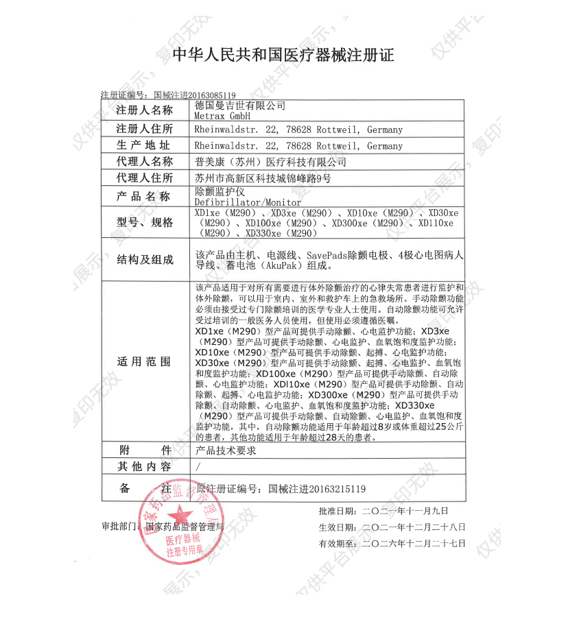 - 商品名称:普美康双向波除颤监护仪 XD1