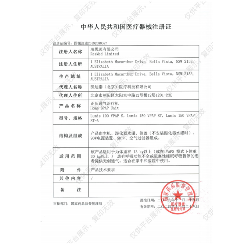 - 产品注册证号:国械注进20192080587