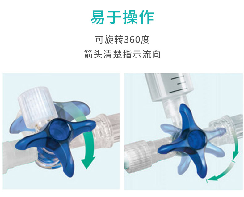 贝朗医用三通设计实用,易于操作,可旋转360度,箭头清楚指示流向;