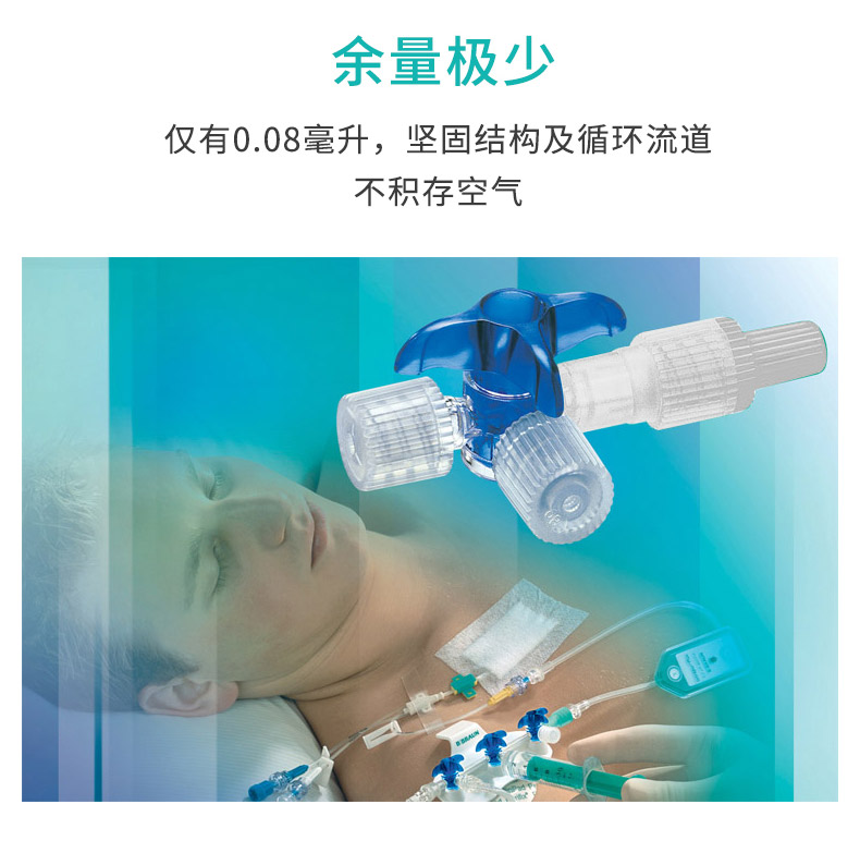 贝朗三通连接牢固、简易, 转换时不必中断,不产生涡流,减少血栓形成,Luer接头既简易又牢靠;