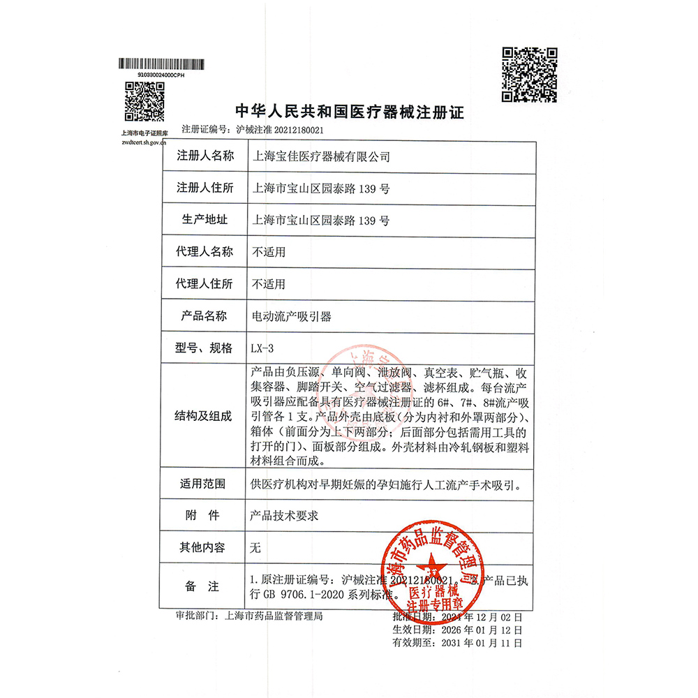 - 产品适用范围:供医疗机构对早期妊娠的孕妇施行人工流产手术吸引。