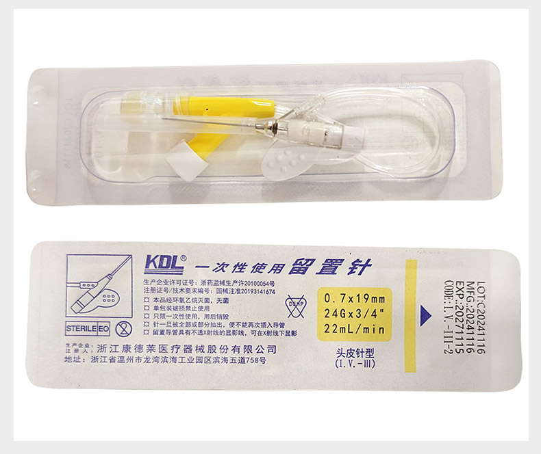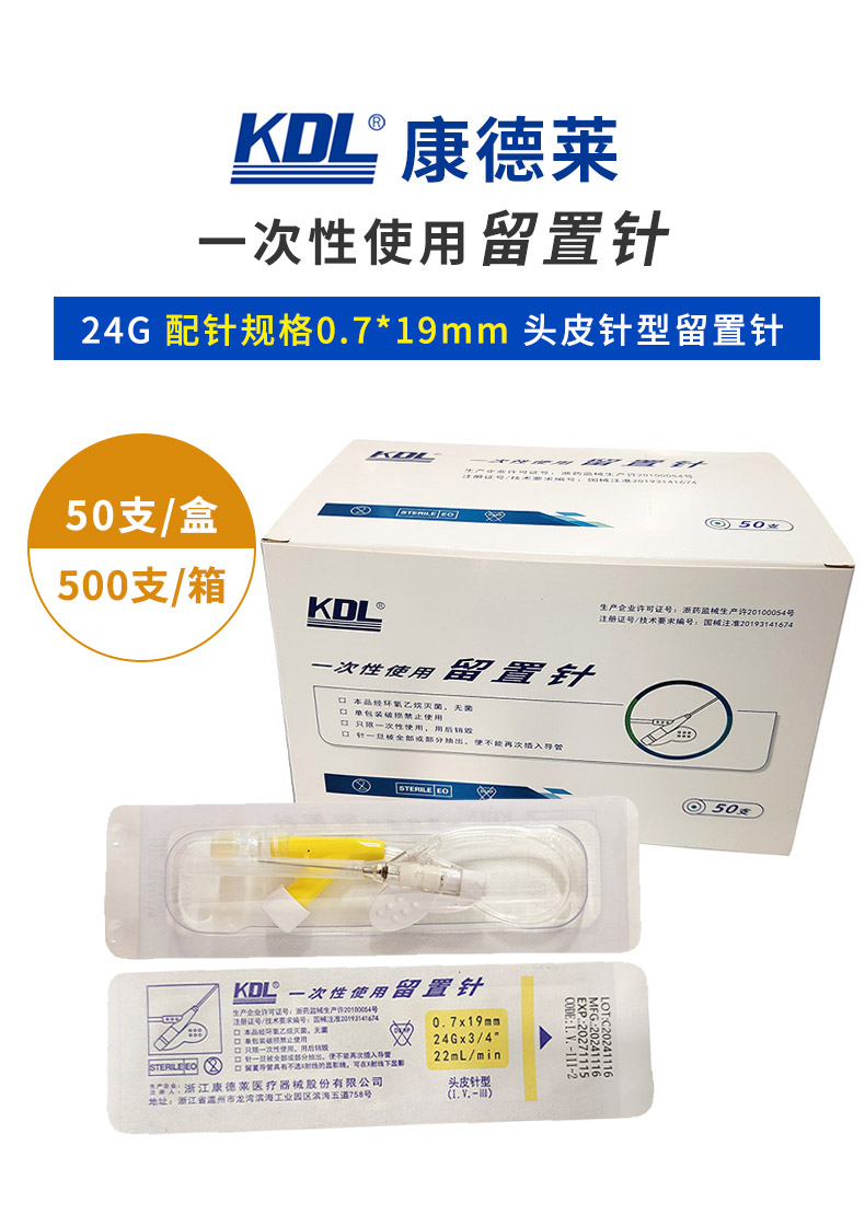 康德莱一次性使用留置针24G 0.7*19mm 头皮留置针