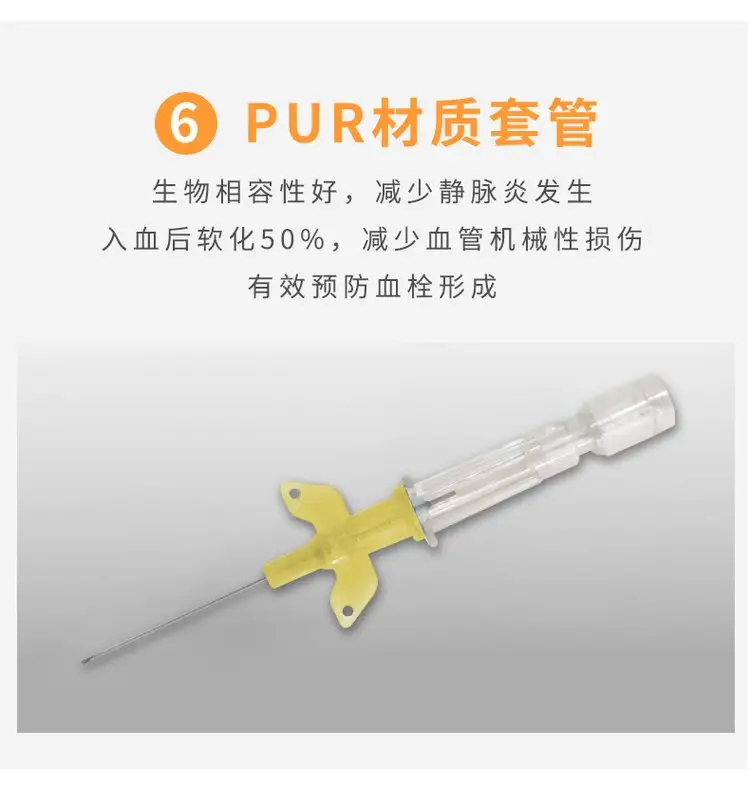 • 产品结构及组成:产品由导引针及针座、外周血管内导管及导管座、排气接头和保护鞘组成。导引针采用不锈钢(铬镍钢)材料制成,外周血管内导管采用氟化乙烯丙烯共聚物制成,保护鞘及导管座由聚丙烯制成,针座和排气接头由丙烯腈-丁二烯-苯乙烯共聚物制成。