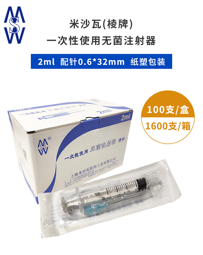 米沙瓦注射器 2ml带针 0.6*32mm 产品介绍: