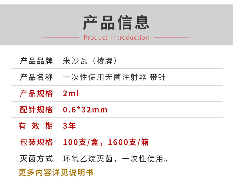 - 产品适用范围:本产品适用于皮内、皮下、肌肉、静脉注射或抽取药液。